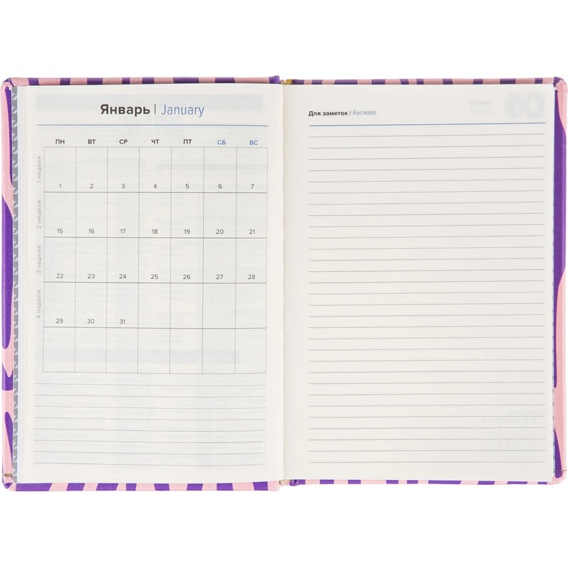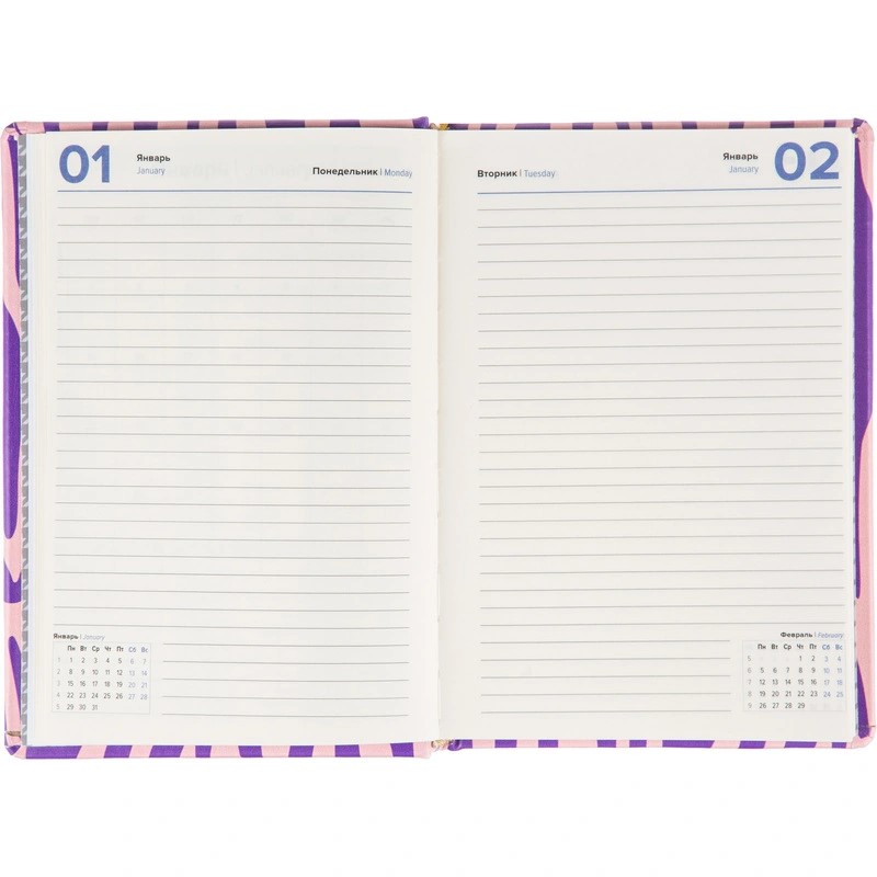 Ежедневник поставляется в термоусадочной плёнке, имеет вертикальную ориентацию и креативный дизайн с рисунком.