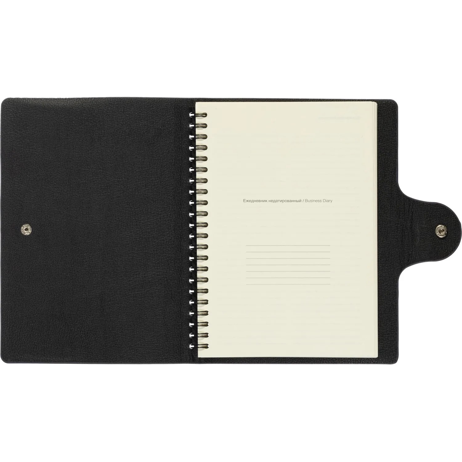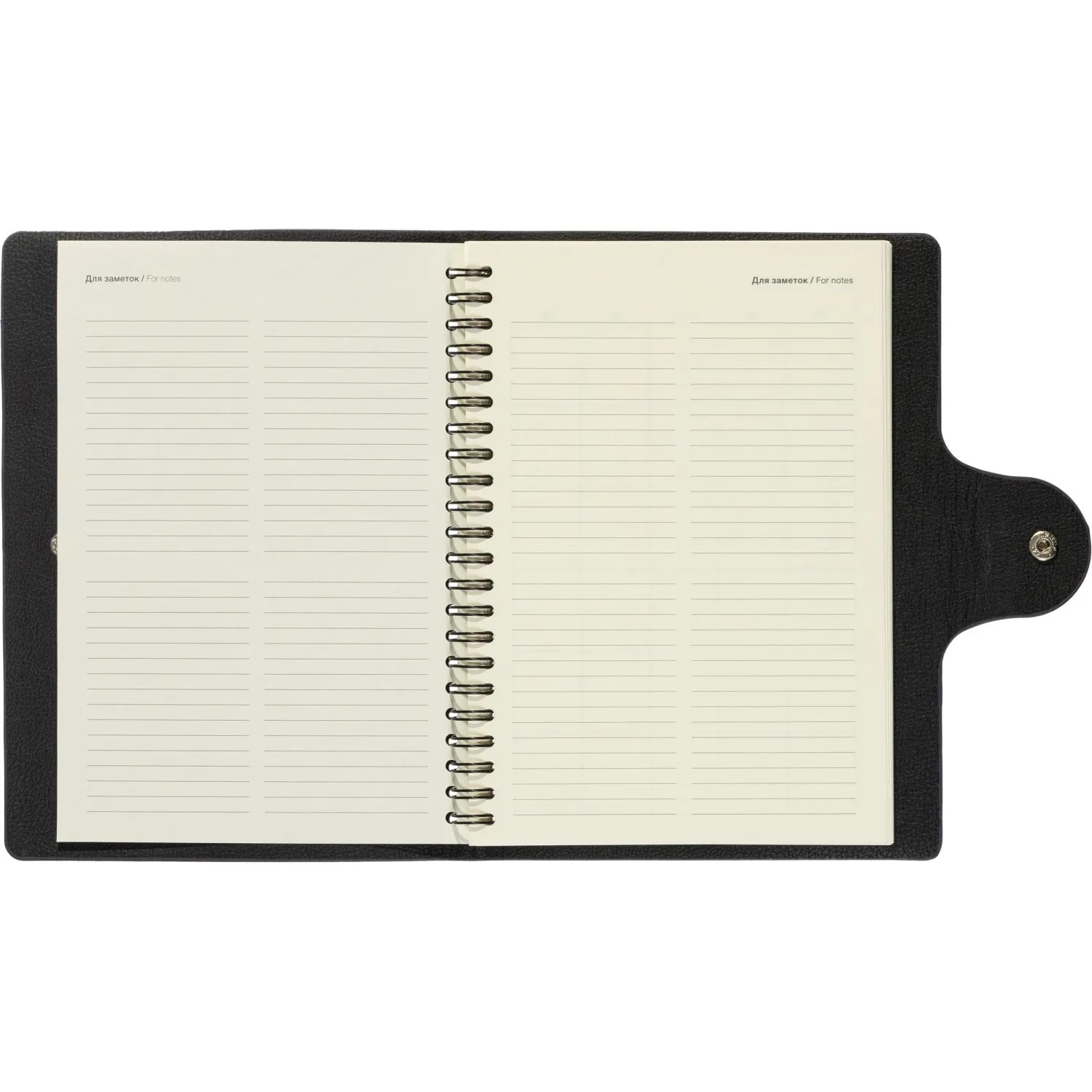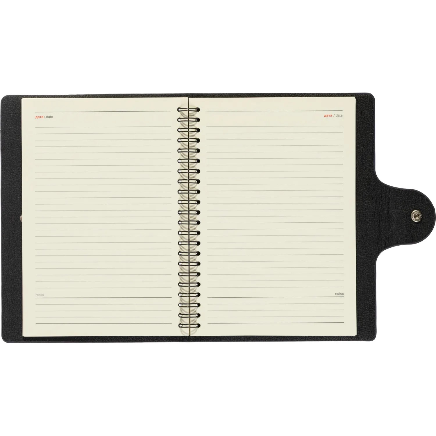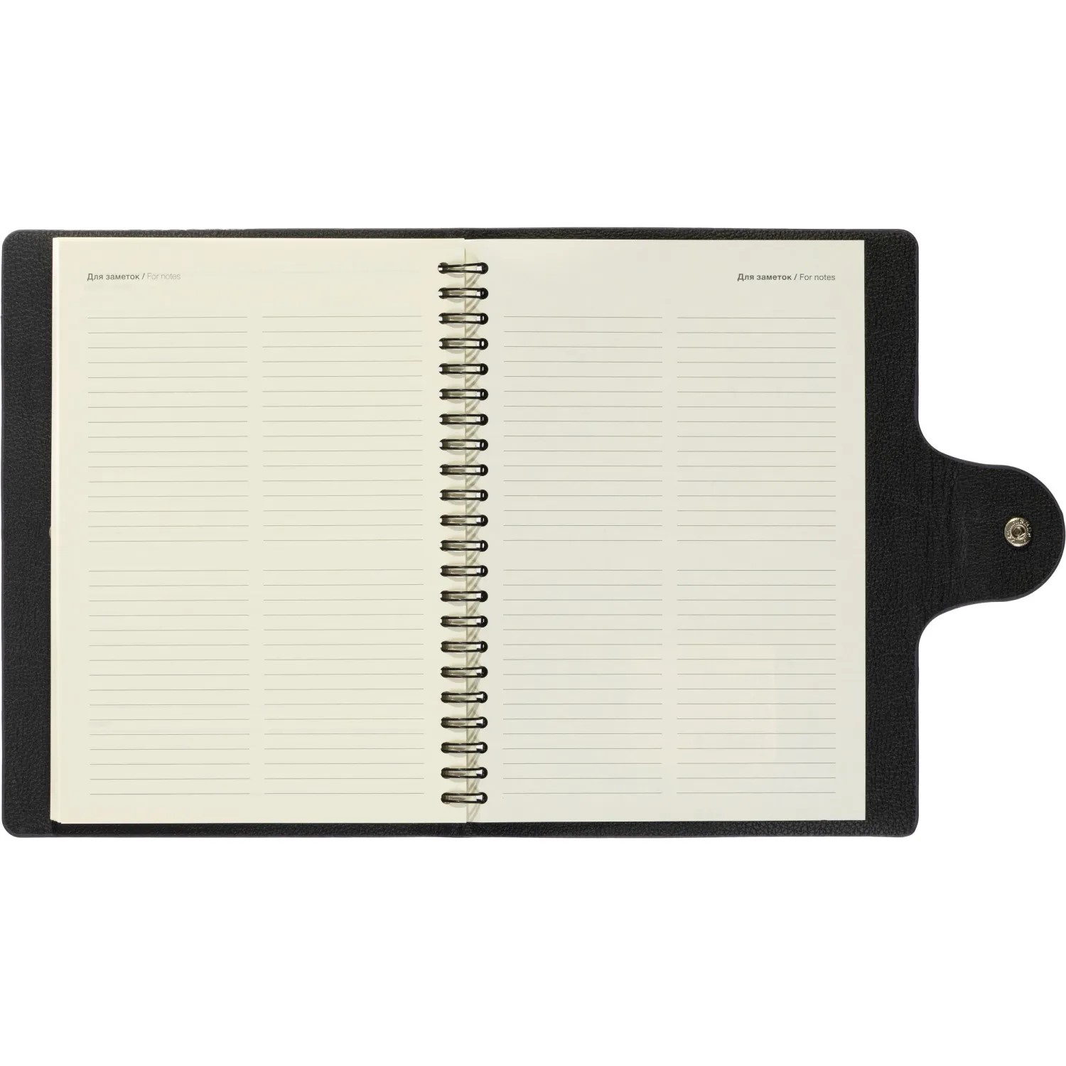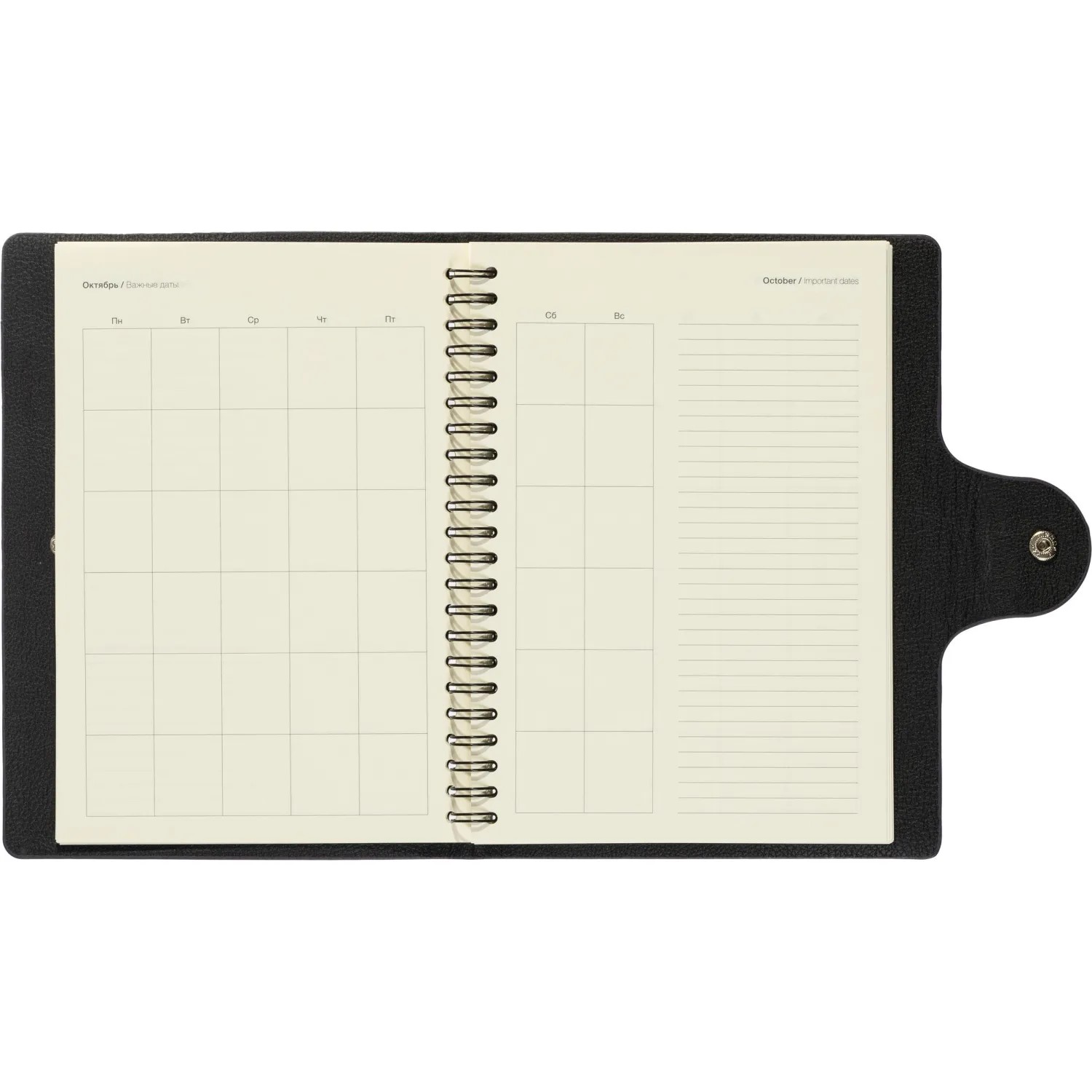 Внутренний блок состоит из 96 листов (192 страницы) высококачественной бумаги цвета слоновой кости плотностью 70-90 г/кв.м. с прямыми уголками и линовкой в линейку. В ежедневнике предусмотрен информационный блок с титульным листом, планером на каждый месяц и разворотами для заметок в начале и конце блока.
