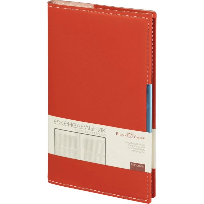 Еженедельник недатированный А6 искусственная кожа 80 л Bruno Visconti Metropol красный