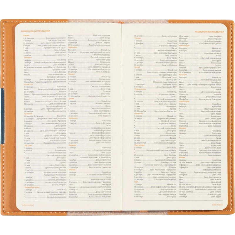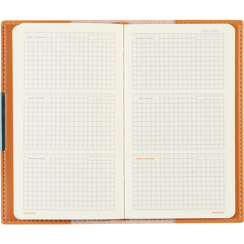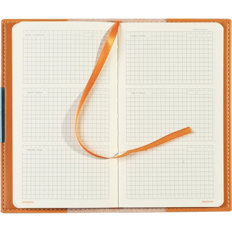 Карманный формат позволяет эффективно вести записи на выездных совещаниях, переговорах и встречах. Еженедельник также подходит для персонализации.