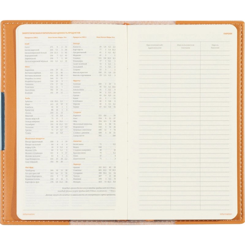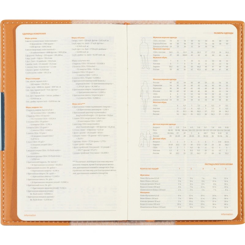 Блок состоит из 160 страниц, сделанных из бежевой бумаги плотностью 70-90 г/кв.м. На 18 первых страницах размещена справочная информация с ценными сведениями из разных областей. Линовка блока — клетка, с указанием дней недели.
