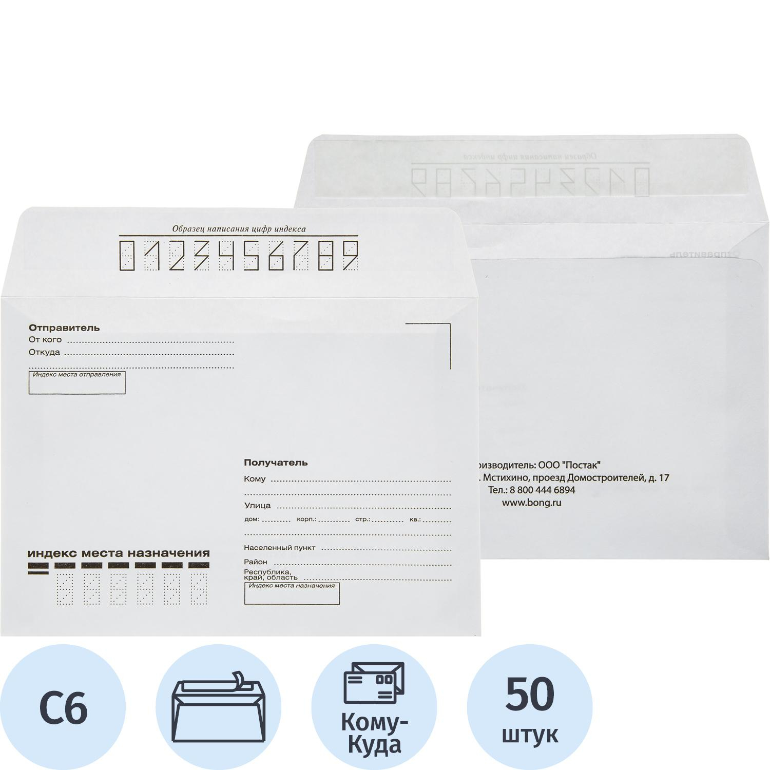 Конверт почтовый Куда-Кому С6 (114х162 мм) стрип белый