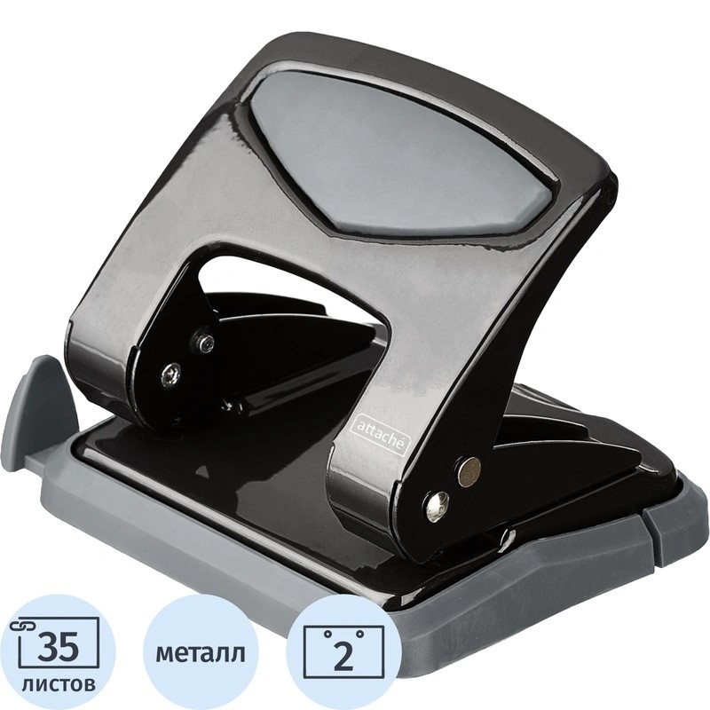 Дырокол до 35 листов Attache черный с блокиратором и линейкой