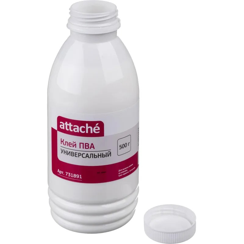 Клей ПВА Attache объемом 500 г (500 мл) на основе водополимерной дисперсии, предназначен для склеивания изделий из различных материалов: глянцевая и матовая бумага, картон, кожа, пробка. Подходит для декоративных работ. После многократного размораживания не теряет своих свойств и товарного вида, после высыхания приобретает прозрачность и эластичность.Удобный флакон оснащен крышкой-дозатором с колпачком, который предохраняет от пересыхания при хранении.