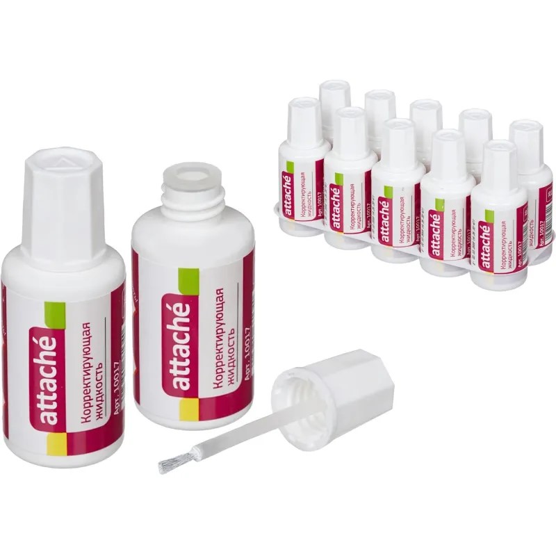 Корректирующая жидкость 20 мл Attache на быстросохнущей основе ворсовая кисточка