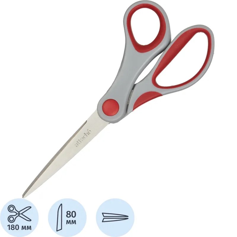 Ножницы 180 мм остроконечные с прорезиненными анатомическими ручками в ассортименте Attache