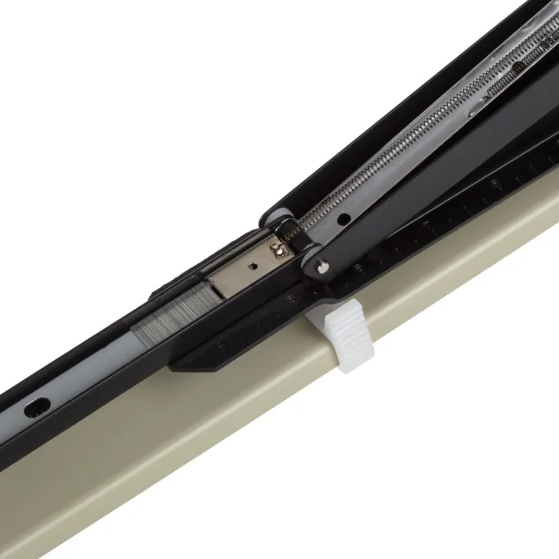 Для эффективного сшивания максимально допустимого объема бумаги необходимо расположить степлер на горизонтальной твердой поверхности, прикладывая усилия, плавно надавить на рычаг (при необходимости двумя руками), разномерно распределяя усилия по поверхности рычага.