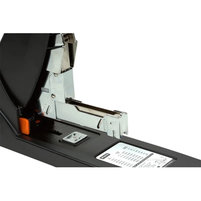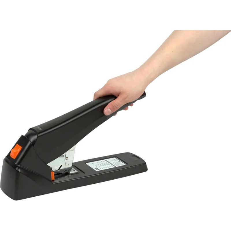 4. Удерживая одну кнопку регулятора (4), одновременно надавите на рычаг степлера