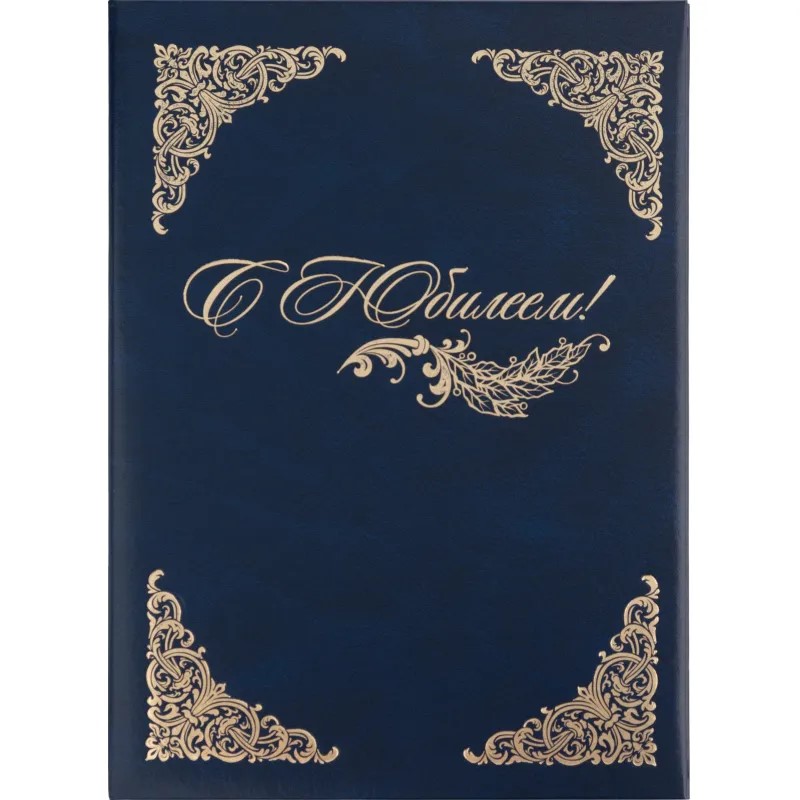 Папка адресная С Юбилеем А4 с виньеткой бумвинил синяя