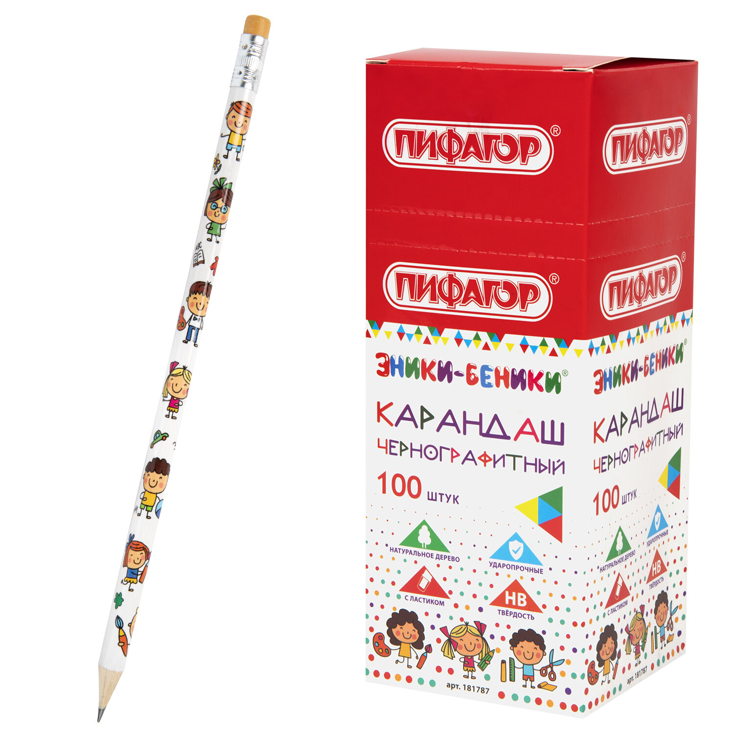 Карандаш чернографитный HB заточенный с ластиком ПИФАГОР "ЭНИКИ-БЕНИКИ"
