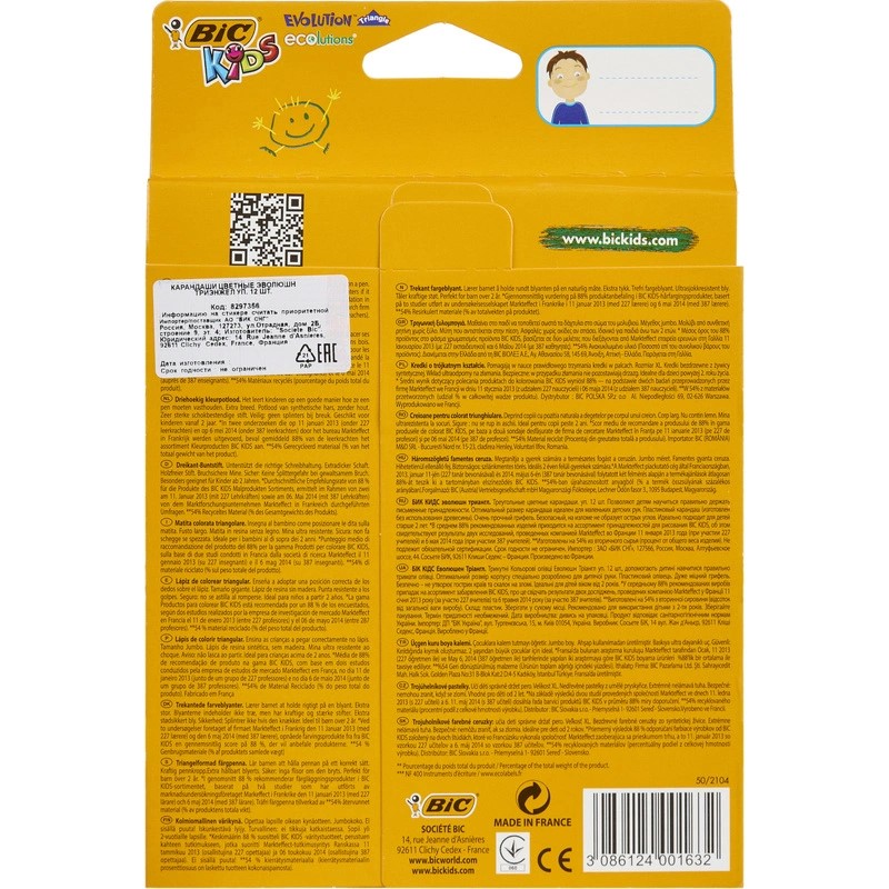 Карандаши цветные 12 цветов трехгранные BIC Evolution