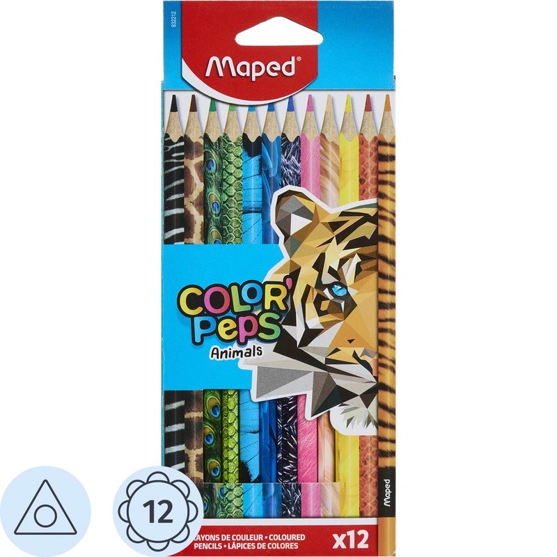 Карандаши цветные 12 цветов трёхгранные Maped COLOR'PEPS ANIMALS