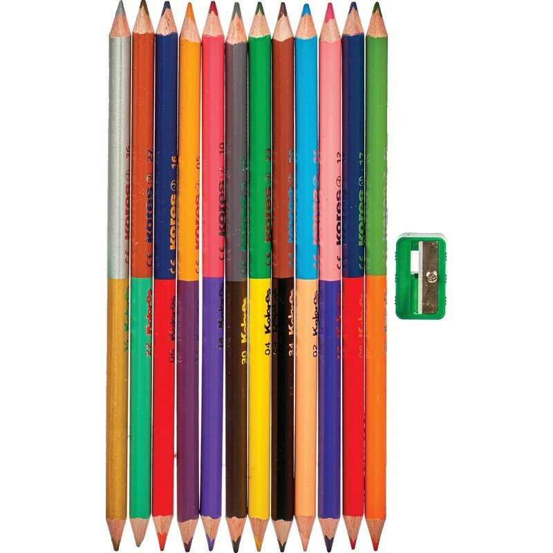 Карандаши цветные двухсторонние 24 цвета трехгранные с точилкой Kores