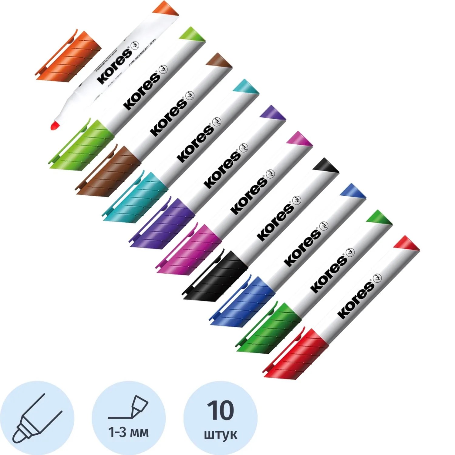 Набор маркеров для досок 10 цветов Kores (толщина линии 3 мм)