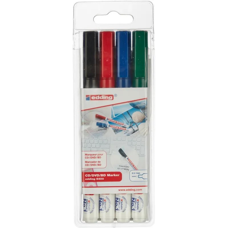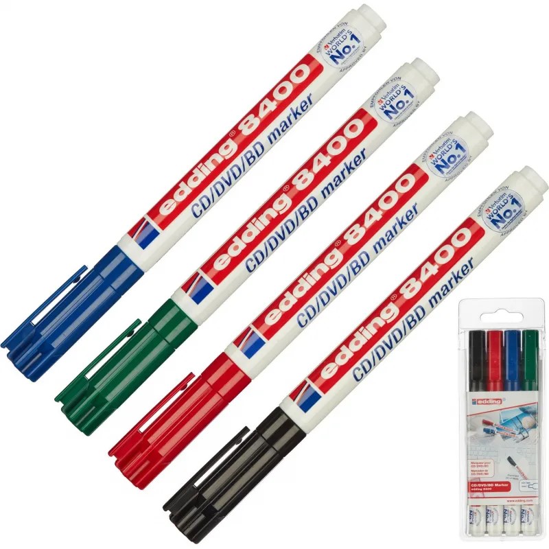 Маркер для CD/DVD дисков 4 цвета Edding 8400 (толщина линии 0.5-1 мм) НАБОР