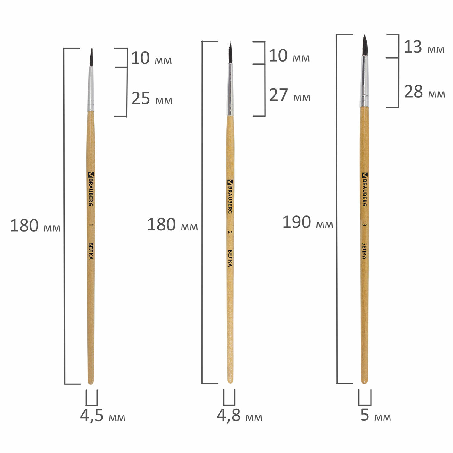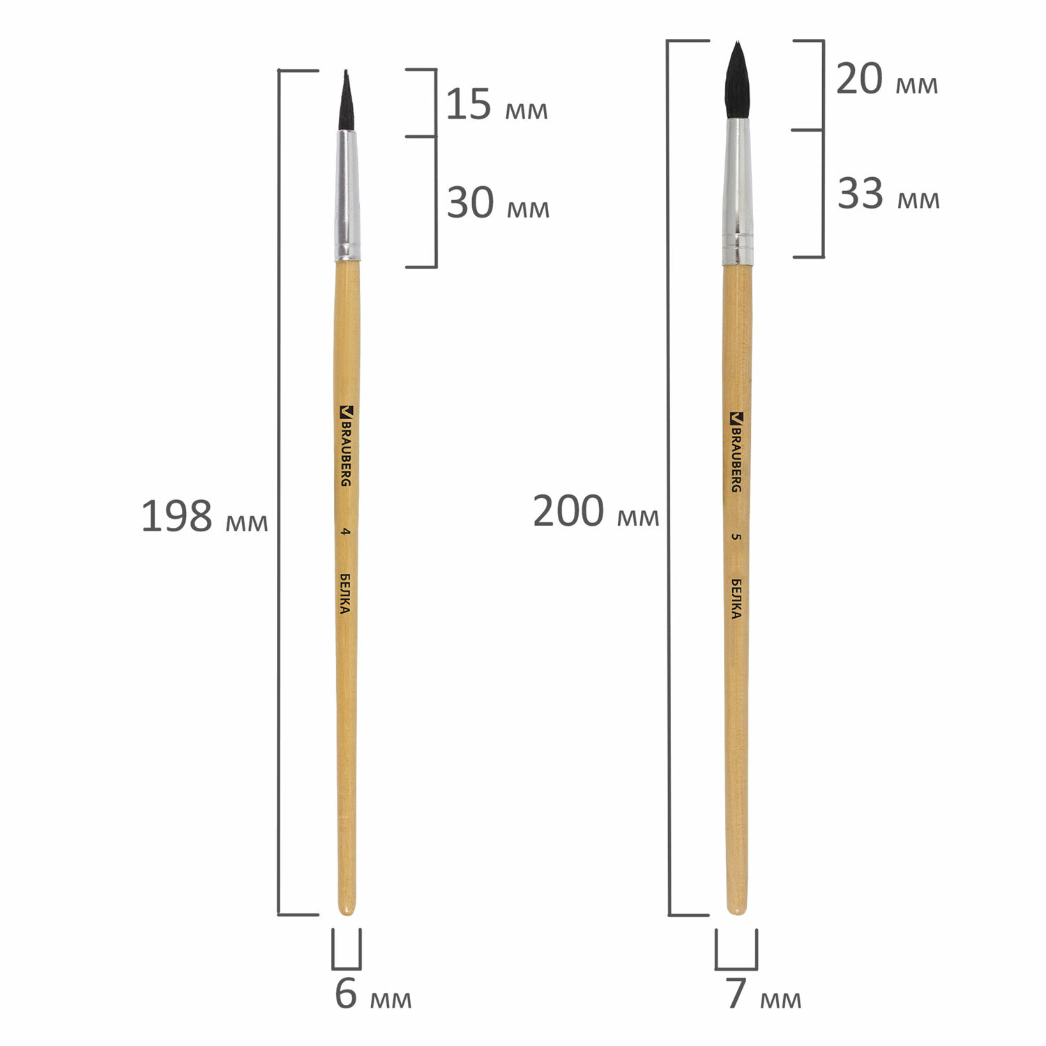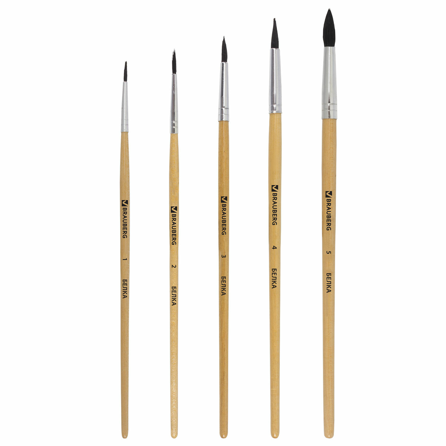 Набор кистей (белка, круглые № 1, 2, 3, 4, 5) BRAUBERG блистер с европодесом