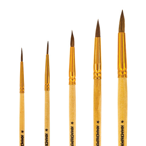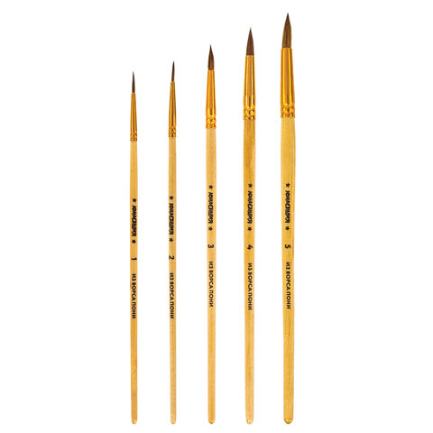 Набор из пяти кистей разного размера ЮНЛАНДИЯ позволяет начинающим художникам решать любые творческие задачи в детском саду, школе и дома. Кисти из волоса пони отлично впитывают и отдают краску, хорошо держат форму, долговечны и надежны. Благодаря кистям №1, 2 и 3 ребенку будет комфортно прорисовывать мелкие детали. Кисти № 4 и 5 позволят делать более крупные мазки и линии. Деревянную рукоятку кисти удобно держать в руке.