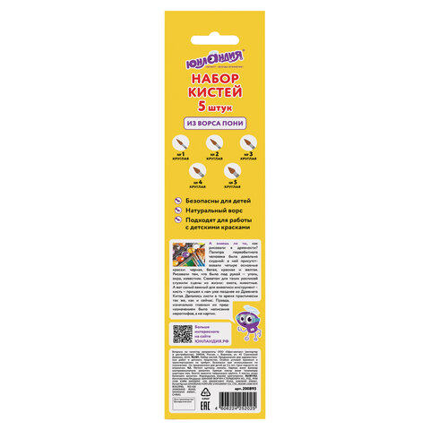 Набор кистей пони круглый пучок Юнландия (уп. 5 шт) блистер с европодесом