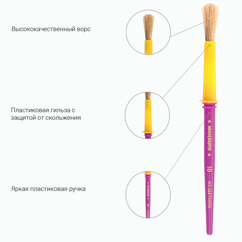 Набор кистей белка круглый пучок №1 School Шустрики (уп. 10 шт)