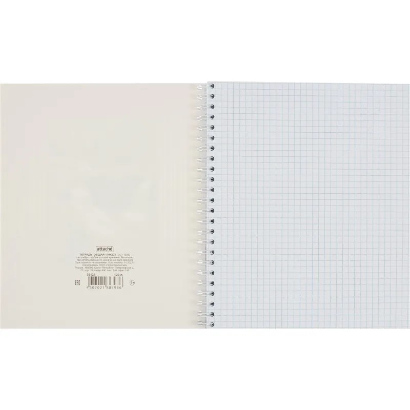 Тетрадь общая А5 120 листов в клетку на гребне Attache Nature