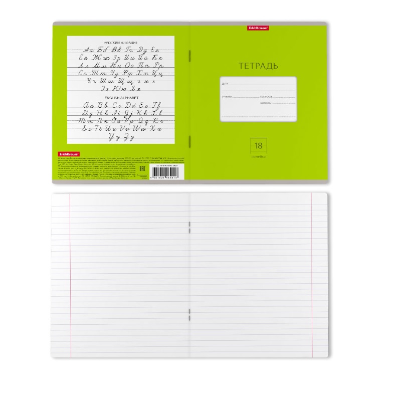 Тетрадь школьная А5+ 18 листов в линейку Erich Krause Классика Bright зеленая