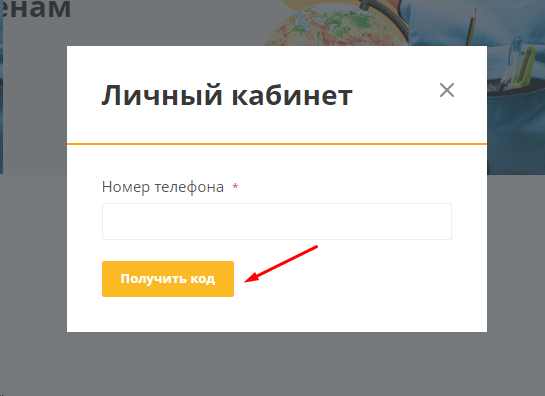 В открывшемся окне авторизации вам необходимо ввести номер телефона и нажать кнопку «Получить код»