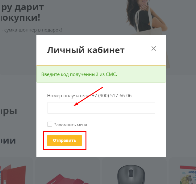 После того как вы нажмёте кнопку «Получить код», на указанный вами номер телефона придёт СМС с четырёхзначным кодом. Введите его в пустое поле и нажмите кнопку «Отправить».