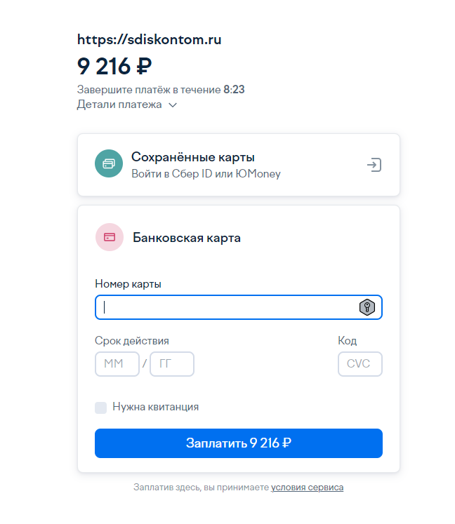 После нажатия кнопки «Оплатить» вы попадаете на страницу платежной системы.