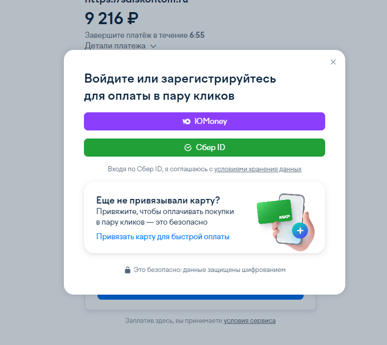 На данном этапе вы можете также оплатить через платежную систему Юмани или Сбер ID. Для этого вам необходимо будет войти в данные платежные системы